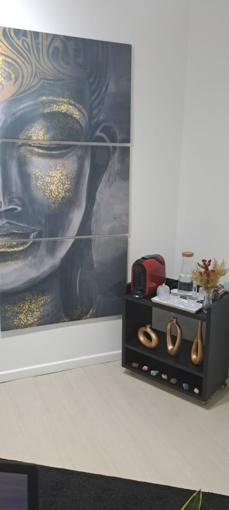 Nosso espaço de atendimento foi projetado para proporcionar uma experiência acolhedora e relaxante. A iluminação suave e as cores calmantes nas paredes criam uma atmosfera serena desde o momento em que você entra. Para aprimorar a experiência, tocamos música ambiente e utilizamos aromaterapia sutil para envolver seus sentidos.